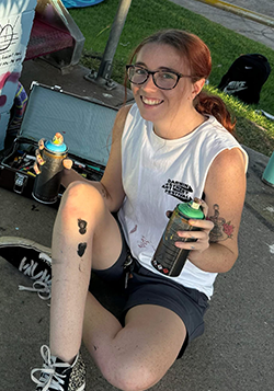Image: Enbarr performs at our 2025 fundraising screening of Kneecap at Deckchair Cinema