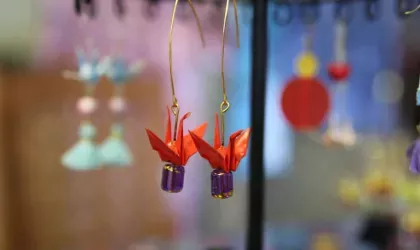 Learn how to fold origami cranes and make origami earrings in this workshop with Sachi Hirayama at the Tactile Arts Christmas Craft Fair.